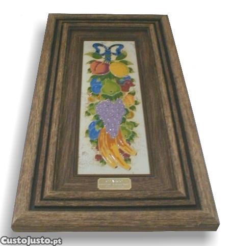Quadro de madeira e cerâmica 62x36x4cm
