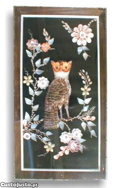 Preço: 70 €Quadro madeira com mocho em concha 66x36cm