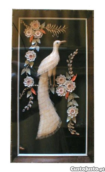 Preço: 60 €Quadro madeira com pavão concha e nácar 66x36cm