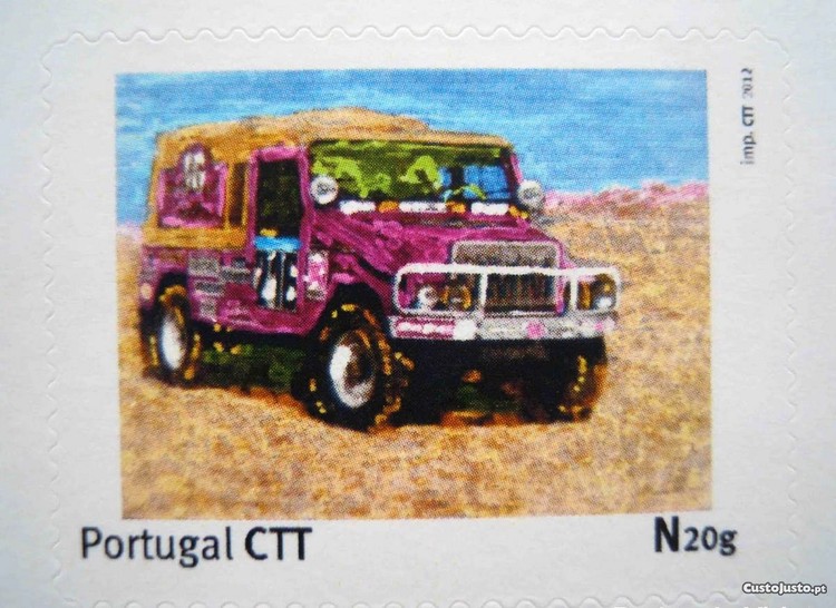 Vendo selos com jipe UMM Cournil com decoração rallye Paris Dakar, duas versões diferentes, evocando duas participações na prova africana.