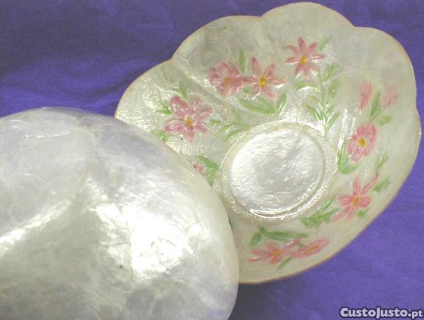 Taça de madrepérola com flores pintadas 13cm