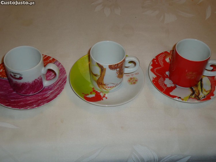 Preço: 10 €Tres Conjuntos de chavenas e pires Delta Cafes