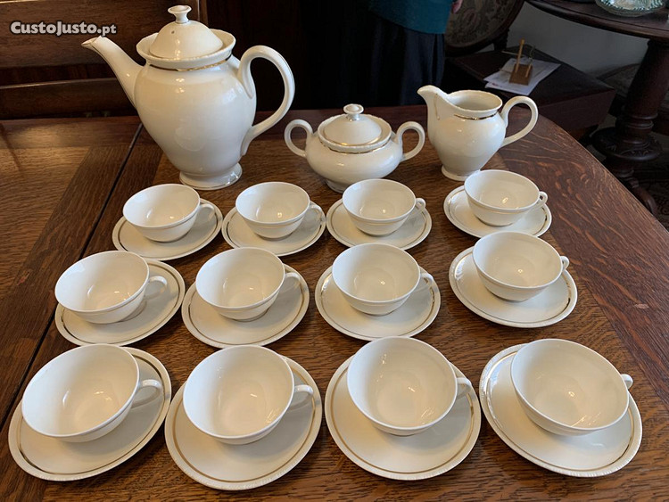 Preço: 140 €Vista Alegre serviço chá/café pérola c fio dourado&relevo-1947 a 68