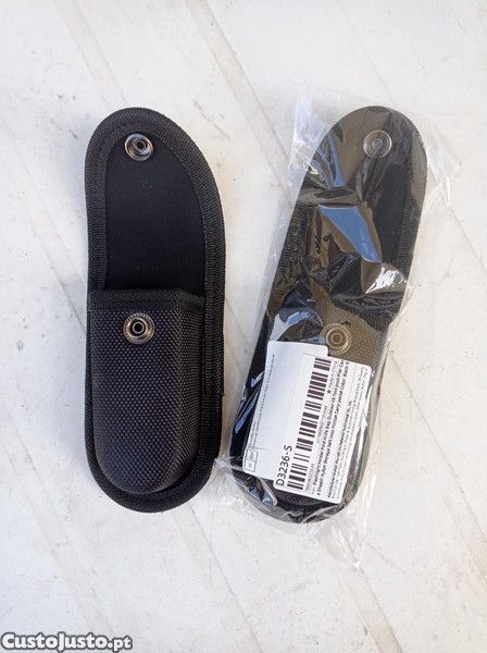 Bolsas pretas para transporte de canivetes com presilha para colocar no cinto. Medidas com as bolsas fechadas, 13 cm de altura e 6 cm de largura,São novas, a estrear. Vendo a EUR 6 cada uma