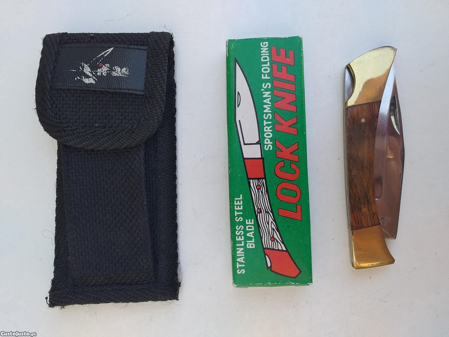 Lâmina em aço inox, cabo em madeira, a estrear, ainda dentro da sua caixa de origem. Medidas na foto. Ofereço bolsa para transportar o canivete no cinto. Vendo a 10
