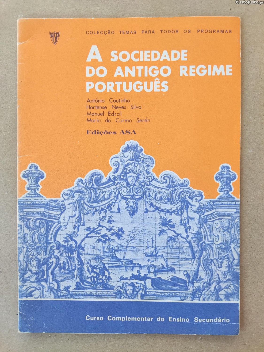 Preço: 18 €"A Sociedade do Antigo Regime Português", por António Coutinho, Hortense Neves Silva, Manuel Edral e Mário do Carmo Serén.