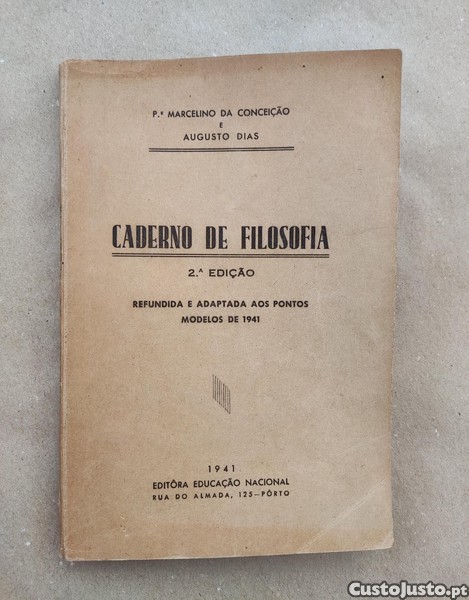 Preço: 16 €"Caderno de Filosofia", por Pe. Marcelino da Conceição e Augusto Dias.