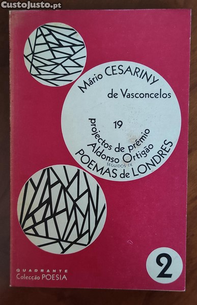 De título completo: "19 Projectos de Prémio Aldondo Ortigão seguidos de Poemas de Londres". Lisboa, (1971). Quadrante, Colecção Poesia. Exemplar em bom estado. Raro.