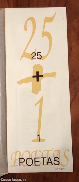 Exemplar muito raro, em formato esguio (40,5x15,5). s/local, s/data e s/editor, com poemas de António Salvado, Carlos Leite, Celeste Craveiro, Fernando Esteves Pinto, Fernando Guerreiro, Helga Moreira, Isabel de Sá, José Emílio-Nelson, Manuel António Pina, Maria Estela Guedes, Nuno Garcia Lopes, Paulo Tunhas, etc. e o epígono Pedro Salgado Faria. Muito interessante pela colaboração poética, pelo formato e pelo grafismo.