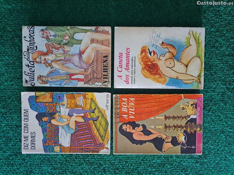 Livros em muito boas condições. Miolo íntegro com algumas evidências de desgaste e utilização no exterior dos livros. O preço apresentado é para o conjunto dos livros. Podem ser vendidos individualmente por 7,50 euros. Títulos: A Caneta dos Amantes, A Boa Viúva, Julieta das Minhocas e Diz-me com quem dormes (este título possui assinatura de posse nas páginas 1, 25, 61, 113 e ultima). Envio grátis em correio editorial normal. Envio em correio registado acresce 2,55 euros. Pode ser entregue em mão no Barreiro. Se tiver alguma dúvida não hesite em perguntar. Master Watson.