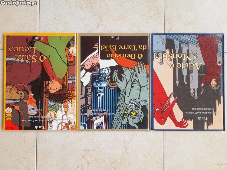 3 álbuns em capa dura desta obra do autor Tardi. Todos os volumes que foram editados pela Witloof (Adéle e o monstro / O demónio da Torre Eiffel / O sábio louco)