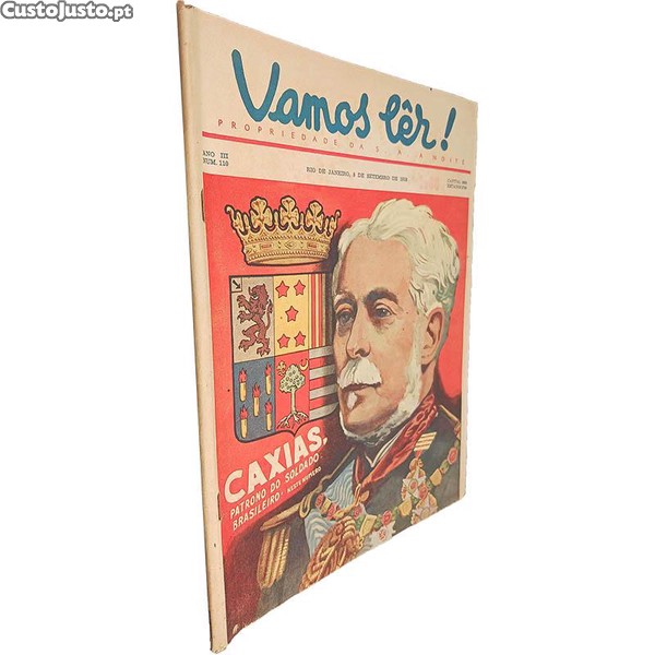 Caxias, patrono do soldado brasileiro (Revista Vamos lêr! N.º 110 1938) Propriedade da S. A. A Noite. Edição Brasileira Vamos lêr! Ano III Número 110 Rio de Janeiro, 8 de Setembro de 1938. DT58