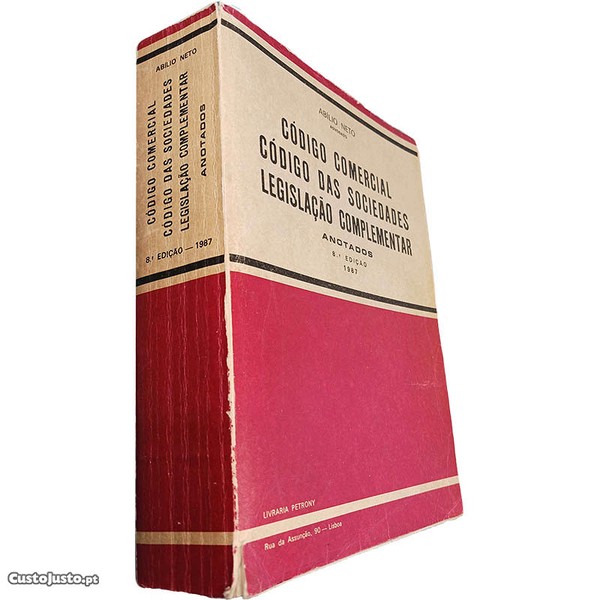 Código comercial Código das sociedades Legislação complementar (Antotados) Abílio Neto Livraria Petrony 8.ª Edição 1987 Livro com carimbo de posse. CB3