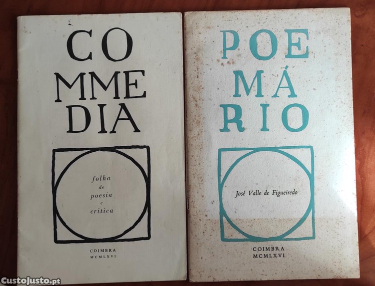 Folha de poesia e crítica. Publicação composta por apenas estes dois fascículos. O primeiro: Coimbra, Março de 1966, teve direcção de José Vialle de Figueiredo, capa de Leandro Morais Sarmento e a maqueta de Manuel Varella e é constituíido por poemas de Goulart Nogueira, João Bigotte Chorão, José Vialle de Figueiredo, Luiz Pignatelli, Manuel Varella e Rodrigo Emílio. O segundo: Coimbra, Julho de 1966, com maqueta de Manuel Varella, e o título "Poemário", é constituído apenas por poesia de José Vialle de Figueiredo. Exemplares em razoável estado, com a capa do segundo apresentando alguma oxidação, própria do papel. Conjunto raro e de estimável beleza gráfica.