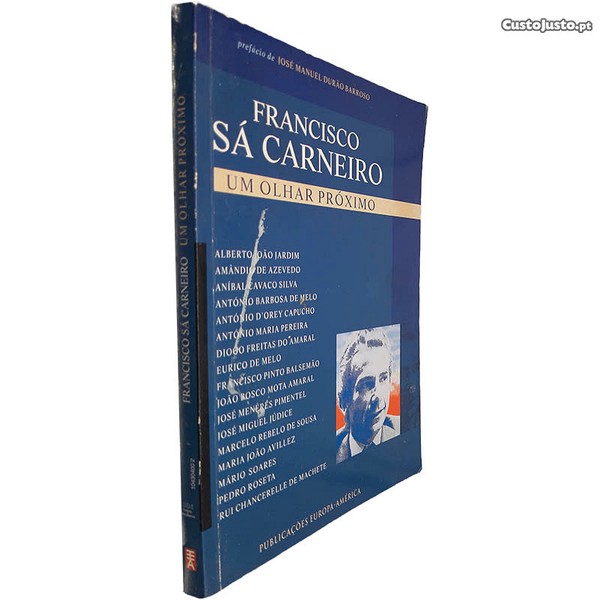 Francisco Sá Carneiro (Um olhar próximo) Alberto João Jardim Publicações Europa-América Alberto João Jardim, Amândio de Azevedo, Aníbal Cavaco Silva, António Barbosa de Melo, António D Orey Capucho, António Maria Pereira, Diogo Freitas do Amaral, Eurico de Melo, Francisco Pinto Balsemão, João Rosco Mota Amaral, José Menéres Pimentel, José Miguel Júdice, Marcelo Rebello de Souza, Maria João Avillez, Mário Soares, Pedro Roseta e Rui Chancerelle de Machete. Prefácio de José Manoel Durão Barroso. Y113