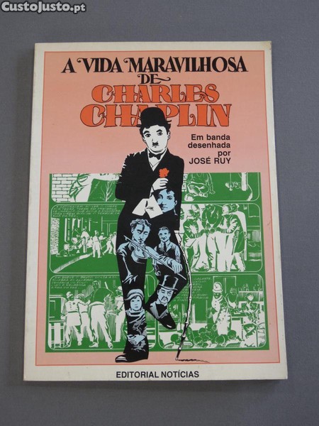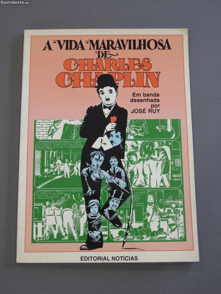 Livro A Vida Maravilhosa de Charles Chaplin em Banda desenhada por José Ruy, Editorial Notícias, 1985, com dedicatória, 29x21cm, 46 pags.