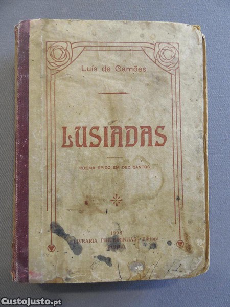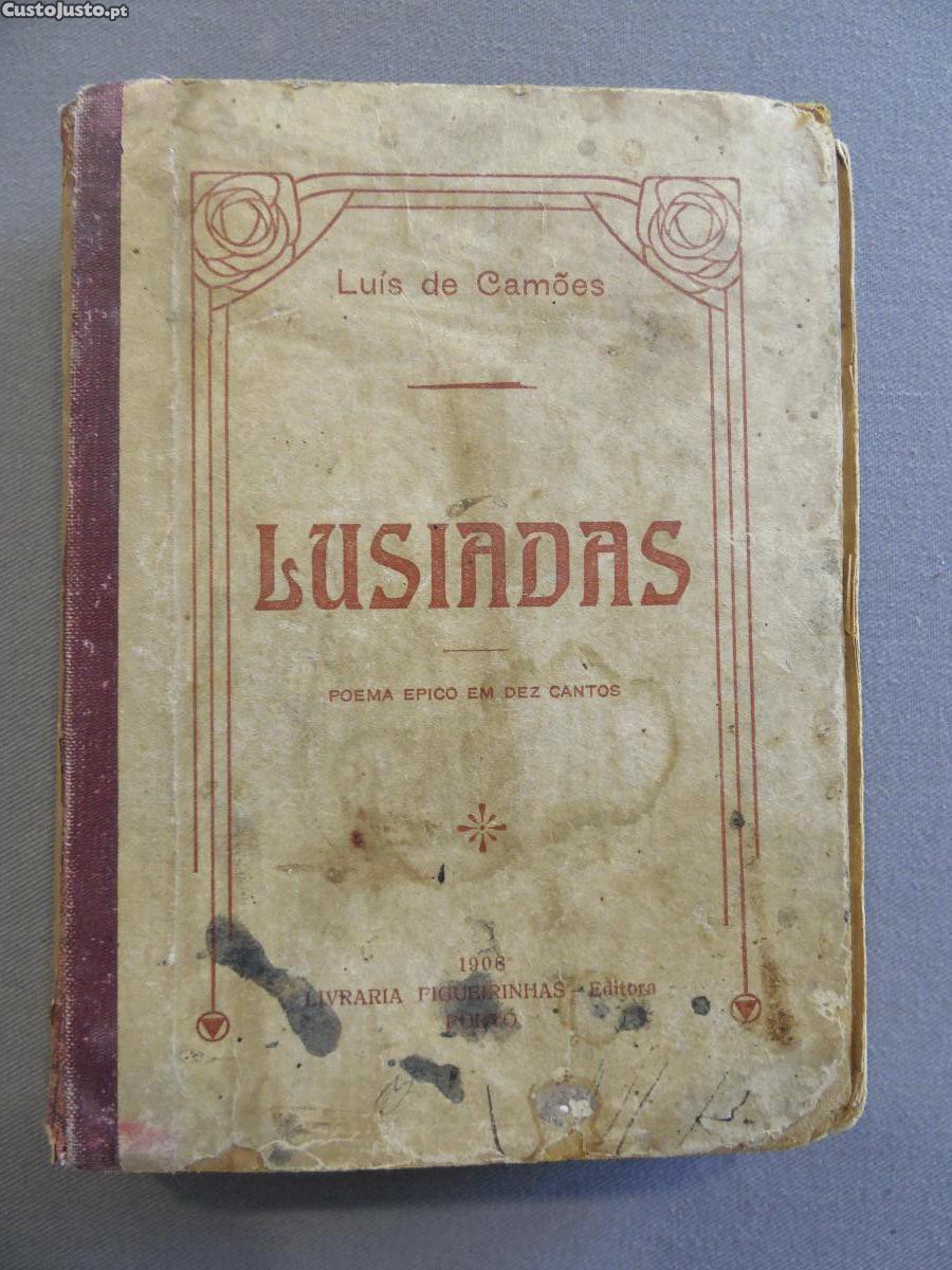 Livro Lusiadas de Luís de Camões - 1908, Livraria Figueirinhas, Porto. 15x11cm. 397 pags. Assinatura de Posse e alguns outros escritos. Contracapa descolada.