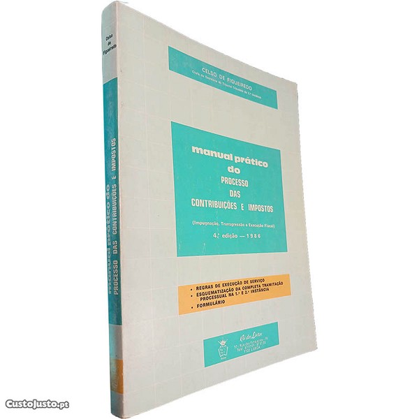 Manual prático do Processo das Contribuições e Impostos (Impugnação, transgressão e execução fiscal) Celso de Figueiredo Rei dos Livros 4.ª Edição, 1986 Regras de execução de serviço Esquematização da completa tramitação processual na 1.ª e 2.ª instância Formulário. CB4