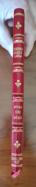 Barcelona. 1937. Editorial Nuestro Pueblo. Enriquecido pela abertura: "Palavras Para Federico" de Rafael Alberti (Mayo, 1937. Madrid. A los siete meses de su defensa). Será esta uma 3 edição após a 1 em 1928 e a 2 em 1929 ? Com vários desenhos ao longo do texto e um retrato de Lorca cujos a autoria não sei determinar. Exemplar com o as capas e o miolo muito limpo e sem defeitos, encadernado em inteira de pele vermelha, com os dizeres dourados na pasta da frente circundados por finos filetes, estes também na pasta posterior, bem como na lombada com nervuras e dizeres também dourados. De alto valor literário, é também uma peça de colecção.