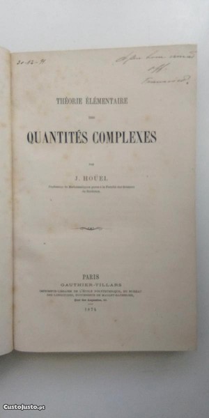 Preço: 10 €Théorie élémentaire des quantités complexes. Jules Hoüel.