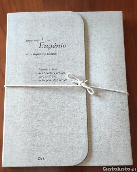 Album de homenagem a Eugénio de Andrade, numa caixa em tela, com poemas e pinturas de 67 poetas e artistas para os 80 anos do poeta. Coordenação de José da Cruz Santos, apresentação gráfica de Miguel Veiga e direcção gráfica de Armando Alves. Alguns e algumas: Albano Martins, António Ramos Rosa, Bernatdo Pinto de Almeida, Diogo Alcoforado, Emerenciano, Gil Teixeira Lopes, Graça Martins, Herberto Helder, Ilda David, Inês Lourenço, João Abel Manta, José Bento, José Viale Moutinho, Luisa Dacosta, Manuel António Pina, Manuel Gusmão, Rui Anahory, Zulmiro de Carvalho, etc., atc. Exemplar 42/250 da edição normal assinado por José da Cruz Santos e Armando Alves. Junta-se um desdobrável com palavras do homenageado - Eugénio de Andrade -, mais Eduardo Lourenço, Luís Miguel Queirós e Manuel de Freitas. Bom exemplar.