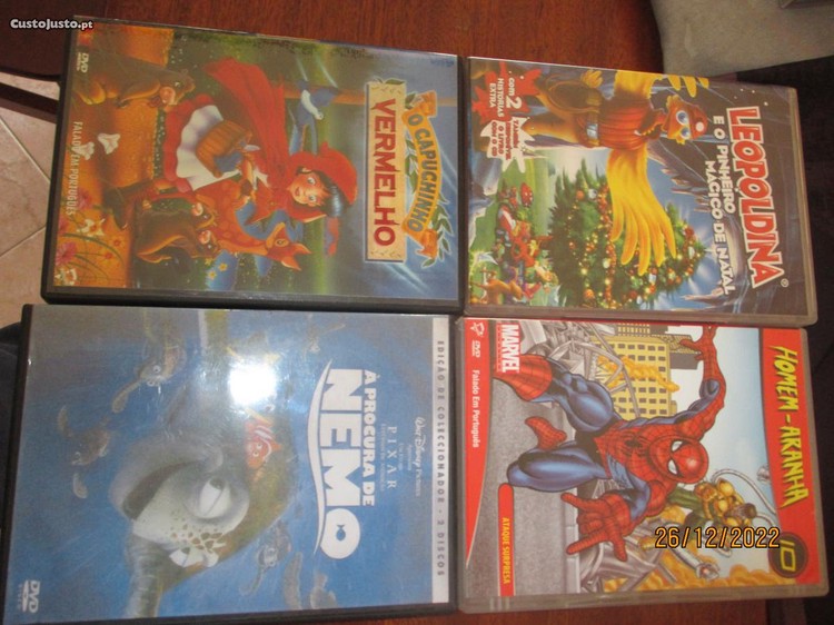 Preço: 12 €4 dvd's - Homem aranha,O capuc. vermelho, À proc. de Nemo e Leopoldina