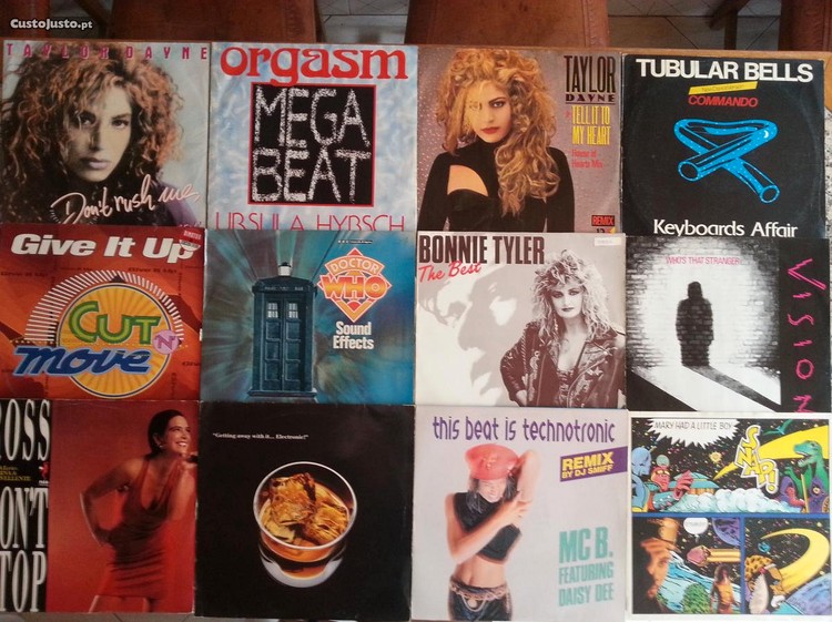 Lote variado de discos de vinil:Foto 1:Taylor Dayne - Don't Rush Me 3ECut 'N' Move - Give it up XRoss - Don't Stop 3EUrsula Hybsch - Orgasm 2EBBC Sound effects n19 - Doctor Who 18EElectronic - Getting away with it... XTaylor Dayne - Tell it to my heart XBonnie Tyler - The best 5EMC B. feat. Daisy Dee - This beat is technotronic 3EKeyboards Affair - Tubular Bells 4EVision - Who's that stranger 3ESnap! - Mary had a little boy XFoto 2:Dynamic "DJ" Steve - Everybody shake your body 2EDance Express - All of your heart 15EPrince and the revolution - When doves cry XPeter Tosh - Mama Africa (só capa interior) 5EJimmy Cliff - Reggae Night XCappella - Get out of my case XQuincy Jones - Back on the block 2EBlue Pearl - Naked in the Rain 2EFor Adults Only - The erotic mix 7,50EHolly Johnson - Atomic City 2ECliff Richard - I just don't have the heart 3EHi Power - Simba Groove 2EFoto 3:Technotronic feat. Ya Kid K - Get Up 3EThe KLF - Kylie said to Jason XThe KLF - What time is love? XChampagne - My love is right 3EYello - Tied Up 5EKraze - Let's Play House 4ESqueezebrain and the Machine - Lovegroove 2ECliff Matthews - With a Knife 32,50ELoni Gamble - Could it be love 3EJessica Williams meets Man 2 Man - These boots are made for walking 3EHazell Dean - Who's Leaving Who 3EMonica Chen - Funk it up 10EFoto 4:Exception - Jump with it 2ESex Shop Boys - Big Tits 35EJoyce Sims - All and All 5ERobbie Rae - Finger on it 5EDr. Alban feat. Leila K - Hello Afrika 4EJNX - Music/Feel Free 2EThe Chance - I wanna freak 7.50EURKoto - Jabdah(special remix) XJellybean - Just a Mirage 2EURKate Ceberano - Young boys are my weakness 2EURD.J. Miko - What's up 3EURWhitney Houston - How will i know XX = IndisponívelQualquer questão não hesite em enviar email.Posso mostrar em mão na zona de Almada ou envio para todo o País à cobrança ou por transferência bancária.Veja os meus outros anúncios.