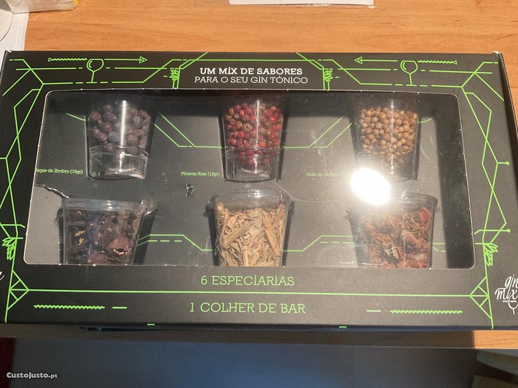 Caixa com 6 especiarias próprias para preparar gin. Gourmet. Poderá ser entregue em mão na zona de Lisboa ou margem sul e ctt custos comprador