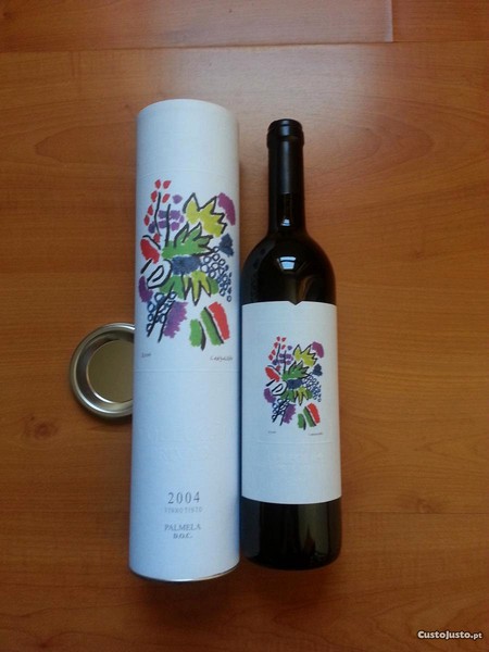 Caixa tubular com garrafa de Vinho Tinto Coleção Privada 2004, Palmela D.O.C. Rótulo de exceção criado por um dos maiores pintores Portugueses Contemporâneos Manuel Cargaleiro.
