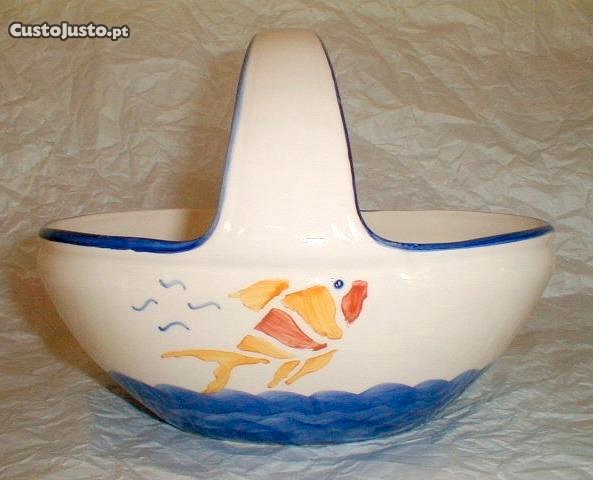 Preço: 15 €Cesto com asa cerâmica peixe 28x11cm