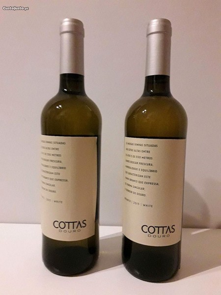 Duas garrafas de vinho branco COTTAS Douro DOC de 2015.