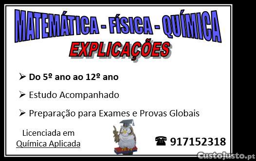 Explicações Matemática e Físico-química 5º ao 12º ano.