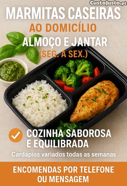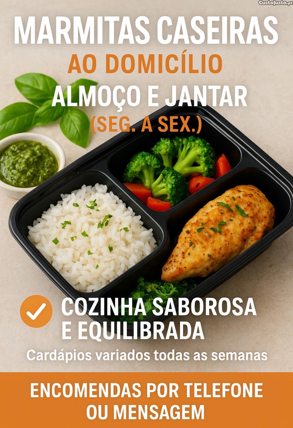 Marmitas caseiras ao domicílio Almoço e Jantar (Seg. a Sex.)