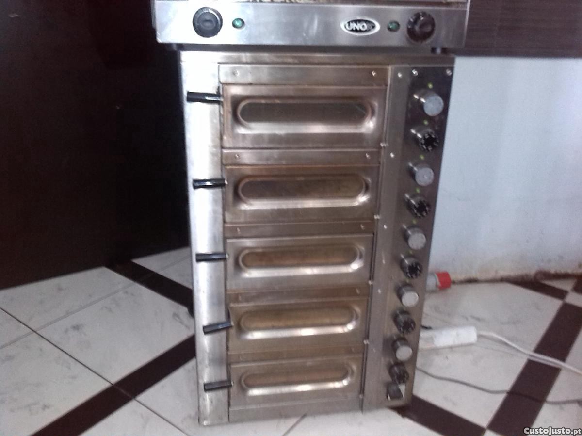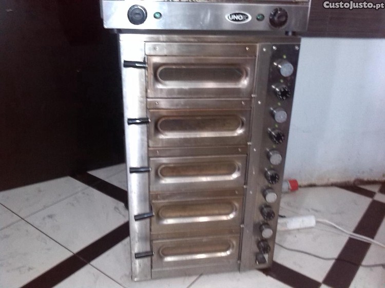 Forno muito económico para pizaria. Tem 5 gavetas com base em pedra que funcionam individualmente