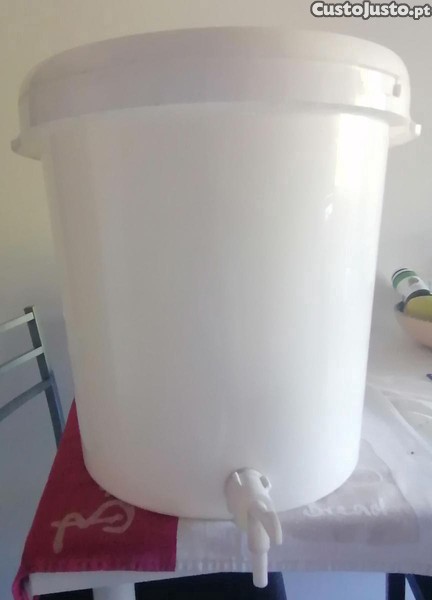 Contentor plástico com torneira Groku 30 l, em bom estado. Entrego na Costa de Caparica.