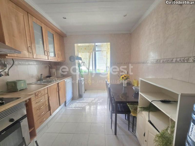 A cozinha é funcional e luminosa, com bastante arrumação, inclui uma prática despensa e uma marquise fechada, ideal como zona de lavandaria ou jardim interior.