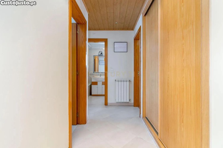 O layout é otimizado, com uma sala ampla que se abre para varandas, proporcionando um espaço perfeito para relaxar. Os quartos são generosos, e a suite oferece privacidade e conforto. O apartamento também conta com um hall de entrada, intercomunicador vídeo e arrumos, garantindo funcionalidade e segurança.