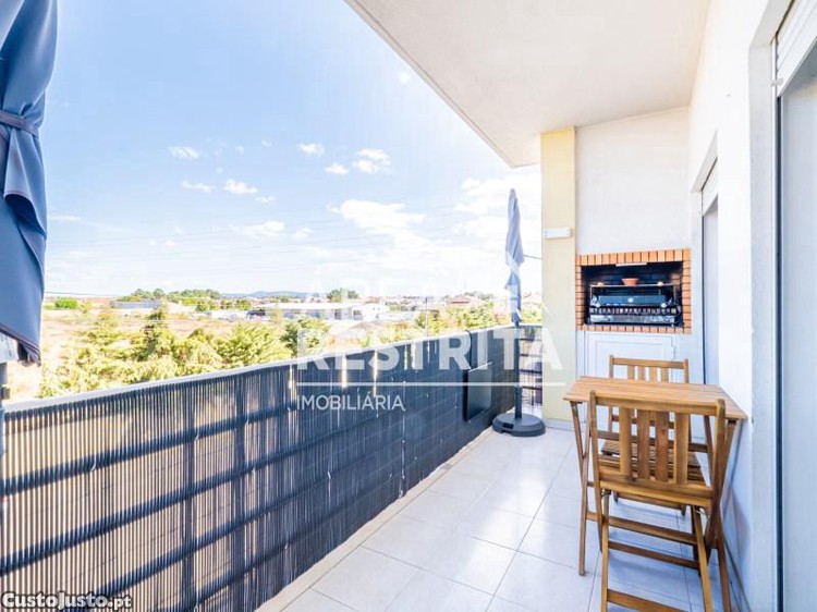 A varanda é um espaço versátil, com capacidade para colocar uma mesa de refeições e churrasqueira, ideal para momentos de convívio ao ar livre.
