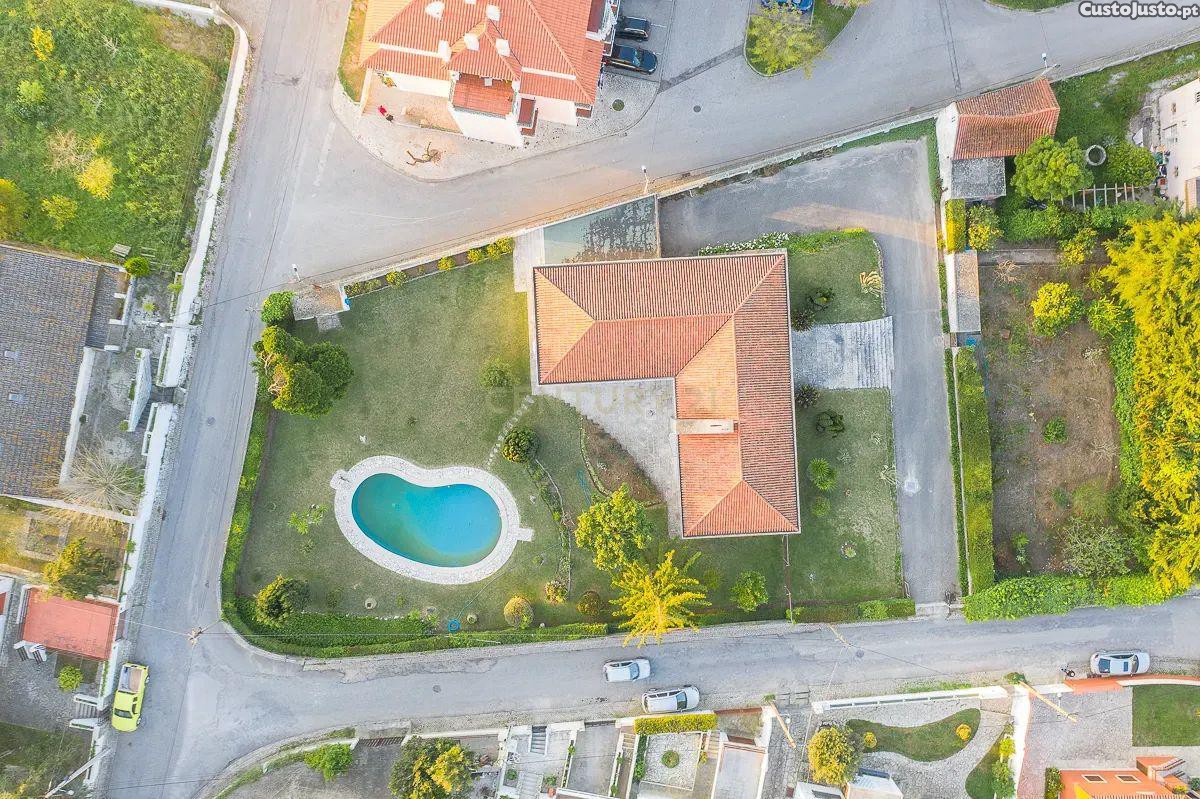 Moradia 1 - T5, inserida em lote de 1985,50 m2, com 450 m2 de área bruta de construção com piscina a necessitar de obras.