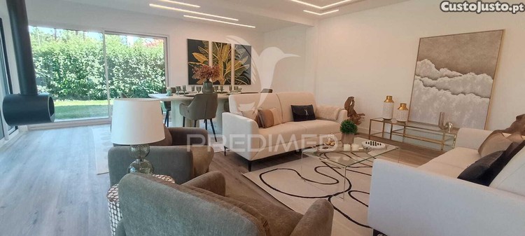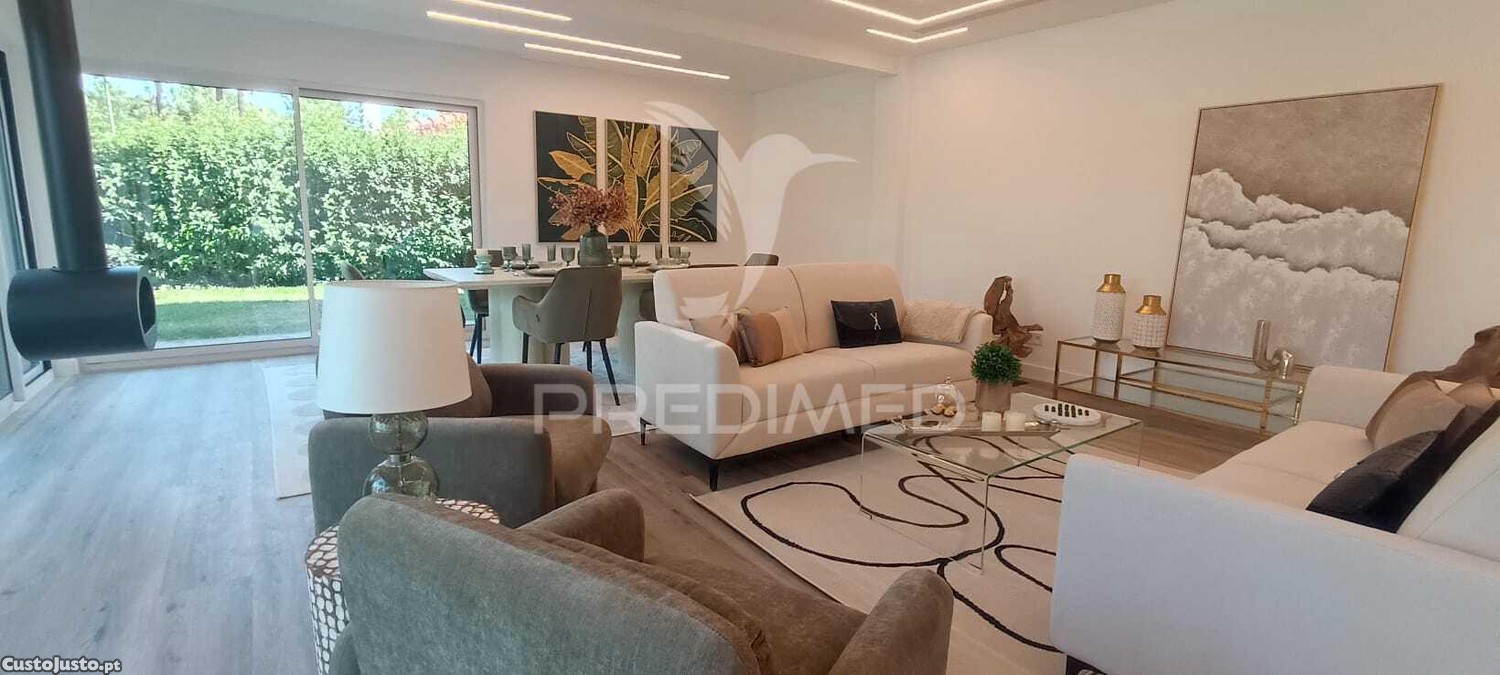 Moradia de Luxo na Herdade da Aroeira Apresentamos uma moradia térrea independente, excecionalmente localizada na prestigiada Herdade da Aroeira, em Charneca da Caparica. Este exclusivo empreendimento beneficia de uma localização privilegiada, inserida num ambiente tranquilo e seguro, com acesso direto ao campo de golfe, 4 campos de ténis, piscina tropical, restaurantes e comércio, além de um hotel de referência para turismo nacional e internacional. O complexo conta ainda com segurança 24 horas.Características do ImóvelTipologia: V4 (3 suítes + escritório)Área Bruta Privativa: Detalhe a confirmar (valores aproximados: sala 45m², cozinha 24m², quartos de 20m², 25m² e escritório 13m²)Lote: 1.356 m²Piscina privativa inserida no lote: 40 m², de água doce, em espelhoCozinha: Totalmente equipada com ilha, móveis brancos, forno, placa, exaustor, micro-ondas, máquinas de lavar louça e roupa encastradas, termoacumulador e combinado encastradoCasas de banho: 4 (uma completa, todas com loiças suspensas)Quartos: 3 suítes (uma com closet), roupeiros, quartos amplos e luminososEscritório: 13 m²Garagem: Lugar para 2 carrosOutros: Arrecadação, adega, jardim com árvores de fruto e palmeiras, sistema de rega automática, domótica, sistema de vídeo-vigilância, ar condicionado, piso radiante, painéis solares, churrasqueiraDetalhes ExclusivosEsta moradia destaca-se pela qualidade dos acabamentos, pela integração perfeita com o espaço exterior, pelo jardim envolvente e pela piscina de grandes dimensões. Ideal para quem procura conforto, privacidade e um estilo de vida único, aliado a todas as comodidades que a Herdade da Aroeira oferece.Valor de Venda: eurAgende já a sua visita e descubra o que esta residência de sonho tem para oferecer!Predimed Imobiliária, Mediação Imobiliária, Lda.Avenida Brasil 43, 12º Andar, 1700-062 LisboaLicença AMI nº 22503Pessoa Coletiva nº 517 239 345Seguro Responsabilidade Civil: Nº de Apólice RC65379424 Fidelidade