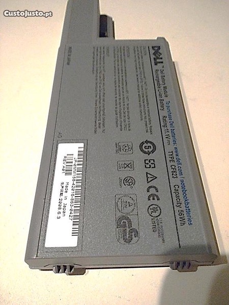 Bateria de 6 células, CF623, para portáteis DELL, não viciada e raramente utilizada - retirada de um Latitude D830, mas compatível com outros modelos da marca.