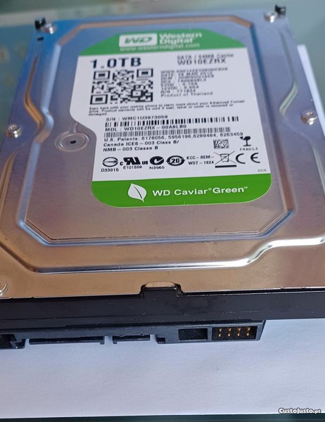 Vendo um disco rígido usado de 1TB, de marca WD Green, com consumo elétrico reduzido.