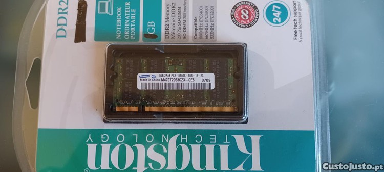 Memória de 1GB DDR2 para portátil, que foi pouco utilizada.