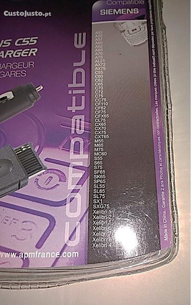 Cabo para carregar telemóvel no isqueiro da viatura, utilizado apenas uma vez, aplicável aos modelos Siemens (vide imagem):