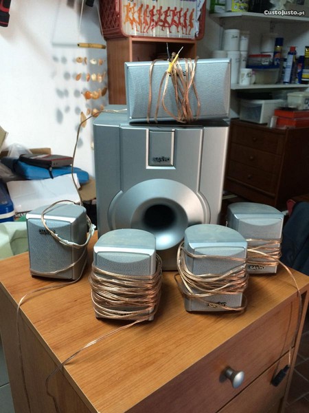 5 colunas e 1 subwoofer em bom estado de funcionamento, entrego em mão na zona de Armação de Pera