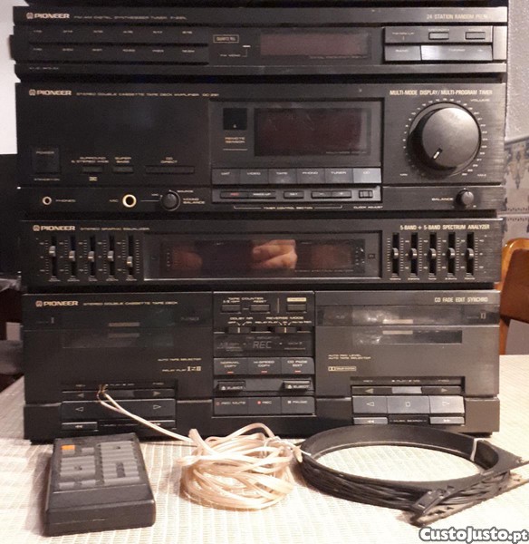 Amplificador, equalizador, rádio, cassete, comando, antena AM e FM.