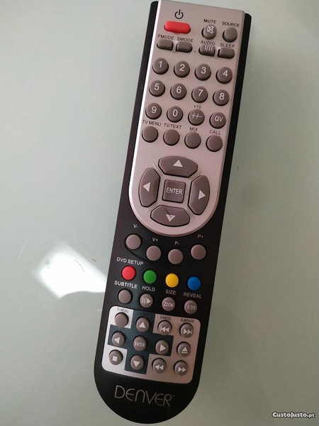 Comando ORIGINAL para TV da marca DENVER, compatível com os modelos TFD-1909 | TFD-1504 | TFD-1904 | TFD-201 | 2206 | 1512 | 1912 | 1922 | 2212. O comando está a funcionar em pleno e não tem qualquer defeito ou problema. Foi adquirido em dezembro de 2020 diretamente à fábrica na Dinamarca (vendo porque a TV entretanto avariou). Possibilidade de envio por CTT com portes a cargo do comprador.