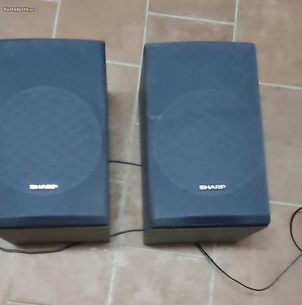 Duas colunas Sharp com 24x15x17cm em muito bom estado, entrego em mão na zona de Almada