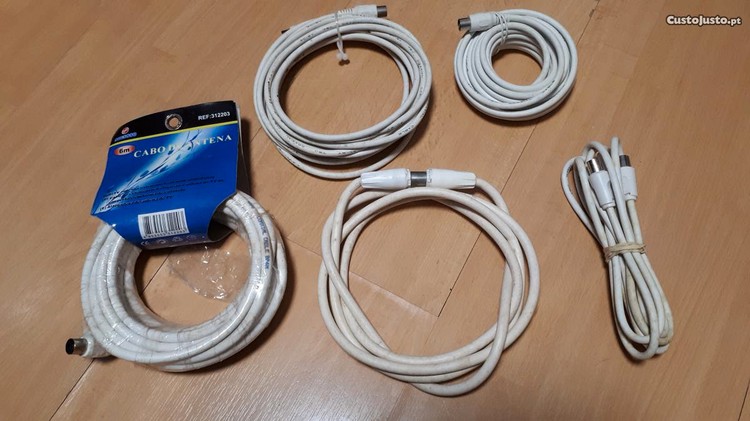 Preço: 45 €Lote de cabos, fichas e acessórios TV/Radio