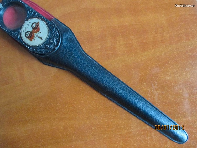 Corta papel, lupa e fita métrica com 1 metro, tudo isto num só objecto que incui também uma capinha